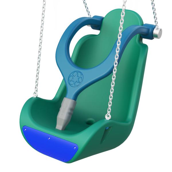 Asiento para columpio inclusivo con arnés de protección y cierre de seguridad CERTIFICADO bajo normativa EN 1176.