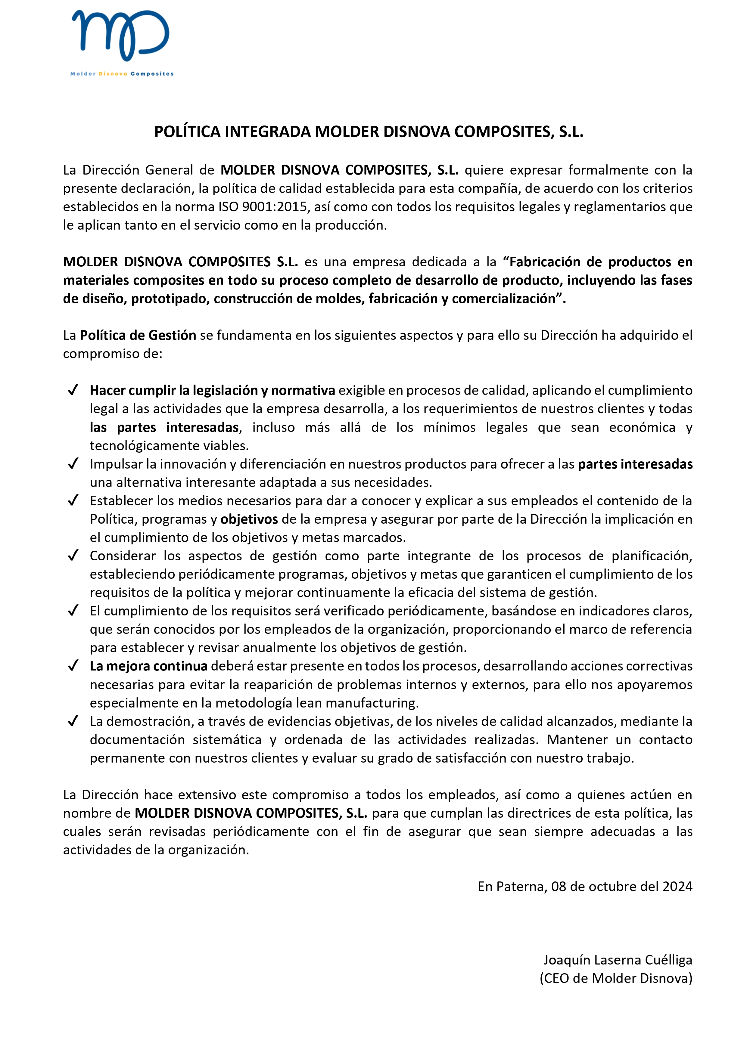 INTEGRATED POLICY MOLDER DISNOVA COMPOSITES S.L.
