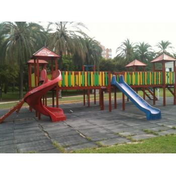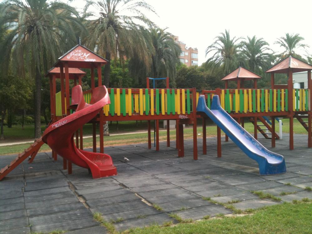 These two slides of Molder Disnova, Spiral 200 and Papi 150, locaced in the old bed of the river Turia in the city of Valencia (Spain), has already been there for more than 18 years. They have been repainted some times and there they are: In a short term, children of who were lucky to launch them, will be sliding them too. The company that built the park has already disappeared, but its design continues functioning as the very first day.